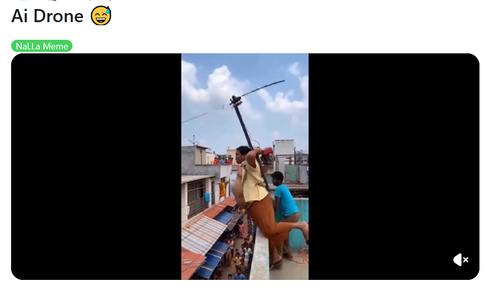 नई दिल्ली (विश्वास न्यूज)। उड़ने की कोशिश करते एक शख्स का वीडियो तेजी से वायरल हो रहा है। वीडियो में देखा जा सकता है कि शख्स देसी जुगाड़ से बनाई हुई एक मशीन को पीठ पर लगाकर उड़ने की कोशिश करता है और छत से कूद जाता है। फिर वो नीचे गिर जाता है। यूजर्स इस वीडियो को असली समझकर गलत दावे के साथ वायरल कर रहे हैं। इसके साथ में यूजर्स एक समुदाय पर निशाना साध रहे हैं।