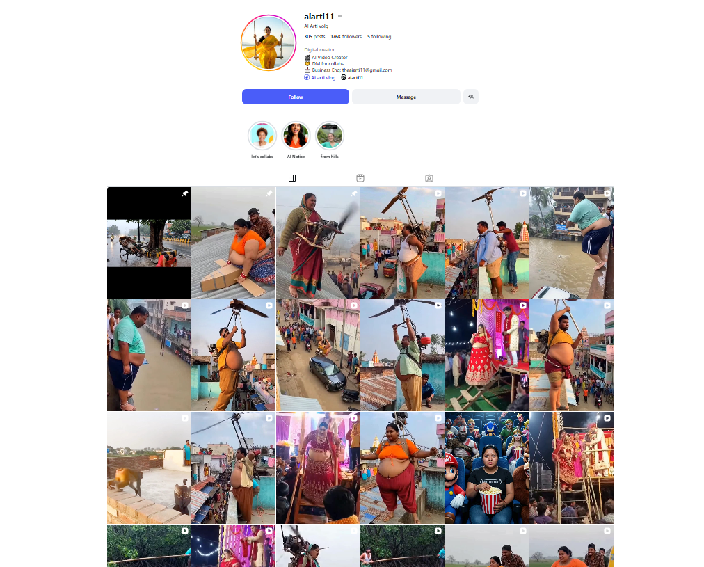 हमने इनविड टूल की मदद से निकाले गए वीडियो के कीफ्रेम्स को गूगल रिवर्स इमेज की मदद से सर्च किया। हमें वायरल वीडियो ‘aiarti11‘ नाम के इंस्टाग्राम अकाउंट पर 26 नवंबर 2025 को शेयर हुआ मिला। अकाउंट को खंगालने पर हमने पाया कि इस पेज पर एआई वीडियो को शेयर किया जाता है। यहां पर इस तरह के अन्य वीडियो भी मौजूद है।