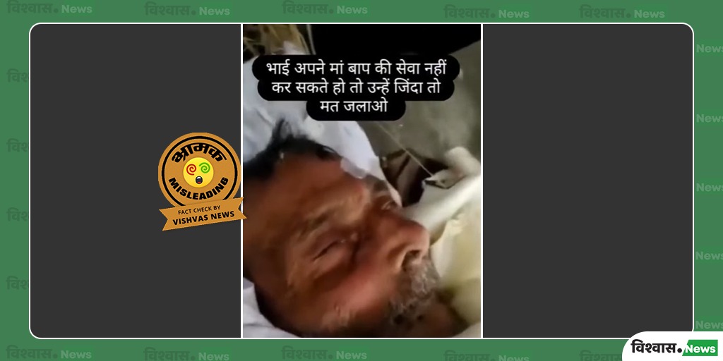 विश्वास न्यूज ने अपनी पड़ताल में पाया कि वायरल किया जा रहा दावा भ्रामक है। यह वीडियो दिल्ली का 2021 का उस वक्त का है, जब एक बुजुर्ग को मुखाग्नि देने के लिए श्मशान लाया गया, लेकिन वहां पहुँचने पर जब बुजुर्ग की सांसें चलने लगी, तो फिर उन्हें अस्पताल में भर्ती कराया गया है। यह मामला ‘कलयुग’ या पिता की सेवा न करने से जुड़ा नहीं है, बल्कि एक बुजुर्ग को गलती से मृत घोषित किए जाने का है।