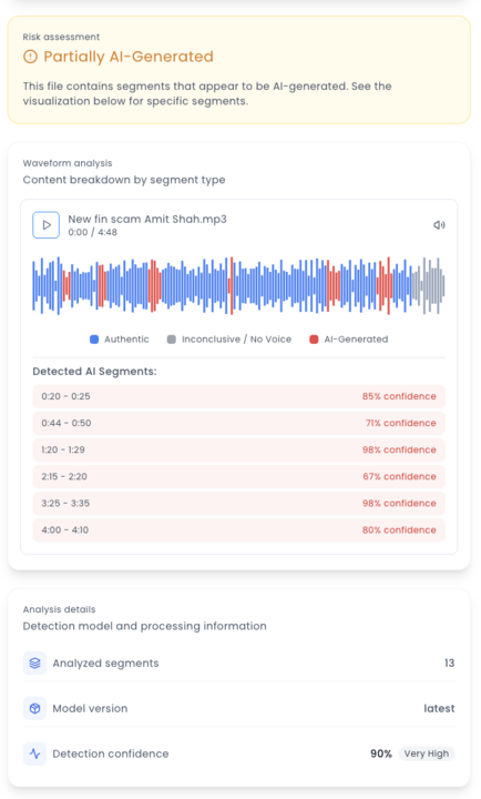 एडवांस्ड ऑडियो डीपफेक डिटेक्शन इंजन वाली स्विस डीप-टेक कंपनी, Aurigin.ai ने ऑडियो ट्रैक को ‘आंशिक रूप से AI द्वारा निर्मित’ बताया