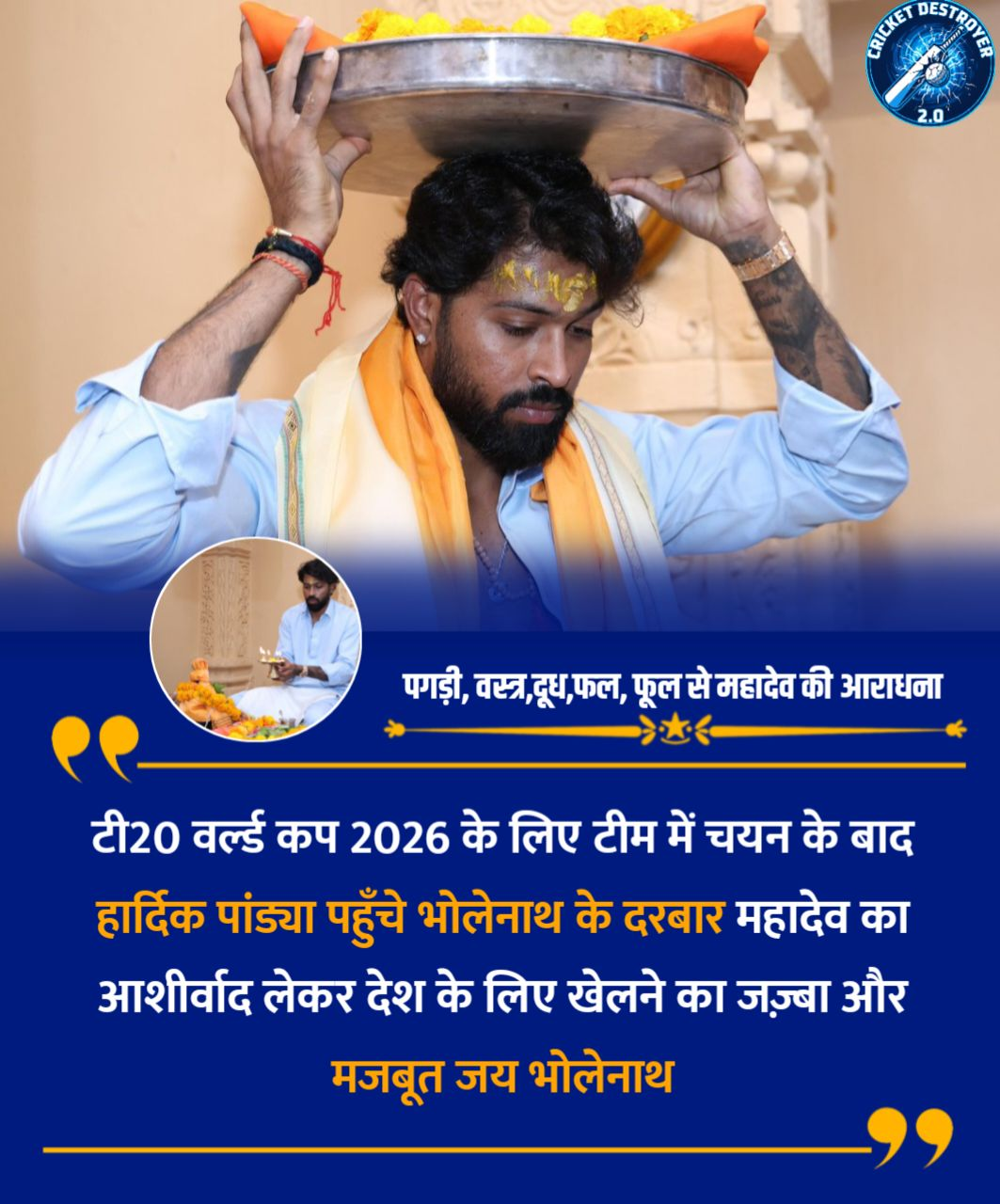 फेसबुक पेज ‘Cricket Destroyer 2.0’ ने 24 दिसंबर 2025 को वायरल पोस्ट को शेयर किया था। पोस्ट पर लिखा हुआ है, “पगड़ी, वस्त्र, दूध, फल, फूल से महादेव की आराधना …टी20 वर्ल्ड कप 2026 के लिए टीम में चयन के बाद हार्दिक पांड्या पहुँचे भोलेनाथ के दरबार महादेव का आशीर्वाद लेकर देश के लिए खेलने का जज़्बा और मजबूत जय भोलेनाथ।”