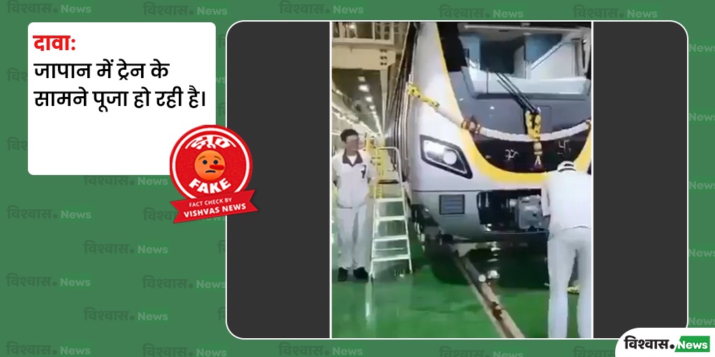 नई दिल्ली (विश्वास न्यूज)। सोशल मीडिया पर एक वीडियो वायरल हो रहा है, जिसमें कुछ लोगों को ट्रेन के आगे नारियल फोड़ते और फिर आरती करते हुए देखा जा सकता है। वीडियो को शेयर करते हुए दावा किया जा रहा है कि यह जापान का वीडियो है, जहां नई ट्रेन के शुरू होने से पहले आरती की जा रही है।